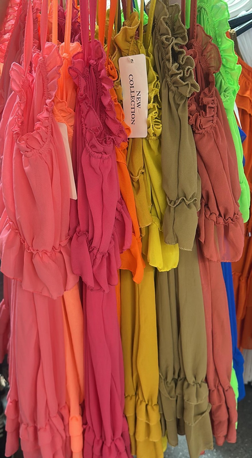 Descopera rochia de vara cu volane si croi lejer, ideala pentru zilele calduroase si evenimentele casual. Modelul are bretele subtiri, decolteu delicat pe umeri si multiple randuri de volane ce creeaza un efect romantic si feminin. Este disponibila in mai multe culori vibrante, pentru a se potrivi oricarui stil sau preferinte.