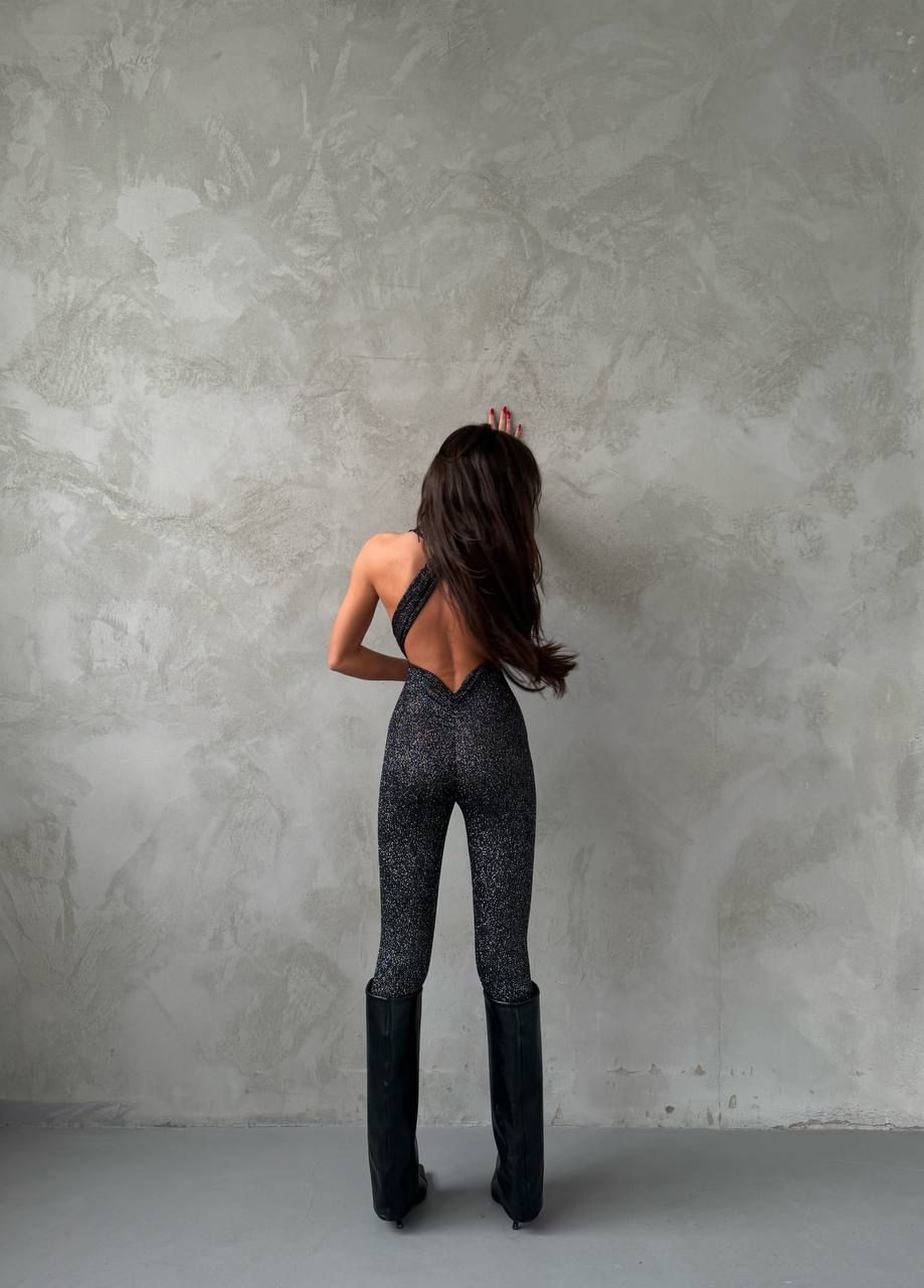 Rafinament si atitudine intr-o singura piesa: salopeta din lycra cu efect metalizat, ideala pentru aparitii memorabile la evenimente de seara, petreceri sau ocazii glam.