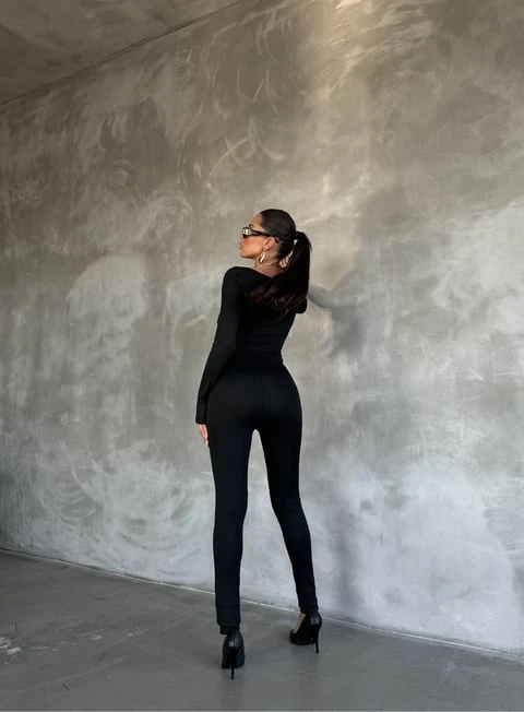 Redefineste-ti look-ul cu aceasta salopeta din lycra elastica si densa, ce ofera un efect de conturare a corpului si un confort remarcabil. Cu decolteu tip balconet si insertie discreta din tulle transparent, aceasta piesa imbina eleganta cu senzualitatea. Manecile lungi si croiala mulata echilibreaza perfect linia corpului, iar materialul microfibra compresiv evidentiaza subtil talia si soldurile.